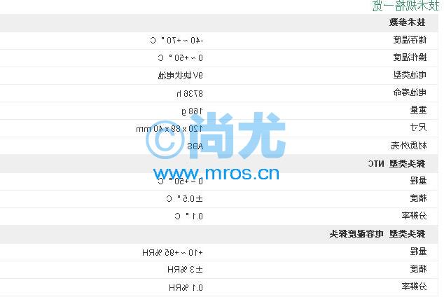 露点温度可测温湿度表;存储温度:-40.0~70.0℃;操作温度:0.0~50.0℃;电池类型:9V块状电池;电池寿命:8736h;重量:168g;规格:L89*W120*H40mm;重量:0.4kg;品牌:德国