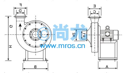 高压鼓风机,风速:2900r/min;功率:4KW;风量:1174-2062m³/h;总压力:4603-4447Pa;安装尺寸:A:340mm;B:420mm;C:100mm;D:140mm;E:160mm;F:200mm;Φ1:200mm;Φ2:260mm;G:315mm;H:490mm;产地:中国 | 1个 | 询价 |