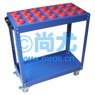 双层组装式刀具车, 产品规格:L800*W400*H900mm; 产品说明:可选配BT40刀套21把或BT50刀套18把; 底盘可存放各类零件及物品,底部3寸脚轮(两定两刹); 产地:中国