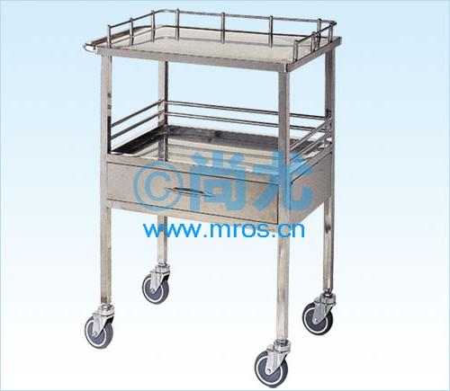 •器械车分为上下两层,均带有不锈钢护栏,器械可分类放置在不同层面上,下层带拉式抽屉,方便实用。
