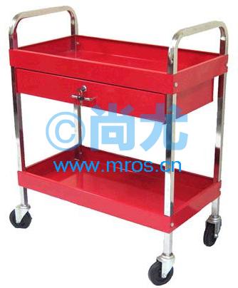 尚尤为您提供双层带护栏型双扶手推车,此款手推车为钢制结构,双层设计,四边带护栏,上层带抽屉,物品摆放安全,两个带刹车脚轮,推车使用方便。