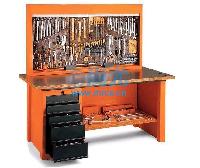 工作台采用优质钢板板精工制作而成,坚固的工作桌框架,牢固平稳,可配合不工使用的要求;带挂板配有卷帘门,工具摆放安全方便,外形美观;层板,抽屉质量上乘,承重大.节约空间,适用性强。
