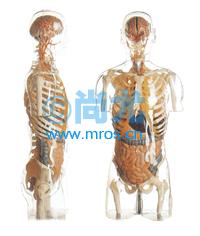 透明半身躯干附内脏模型,全透明外形,内部构造清晰,骨骼和内脏模拟真人,逼真精致,用于教学实践,形象直观,采用进口材料,质地精良
