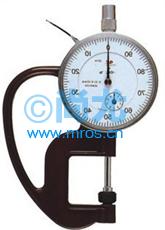 针盘式厚度计;技术参数:目量(mm):0.01;测定范围(mm):0~10;测定深度(mm):20;指示误差(μm):±20;测定子:直径(mm):10;平行度(μm):5;测定力:1.8N以下;品牌:日本 询价