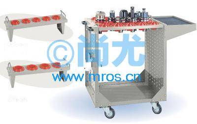 由穿孔钢板制成,无抽屉推车式设计,方便移动,有两种型号可供选择,一种可以存放BT40型刀具5支,另一种可存放BT50型刀具4支,适合在车间,维修场合使用。