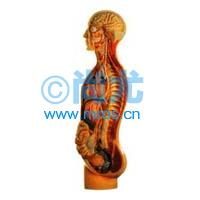 交感神经系统模型;特点:显示位于躯干的交感神经系统;尺寸:为自然尺寸的2/3,模型置于基板上,高74cm,宽25.5cm,厚10cm ;材质:进口PVC材料,进口油漆;模型结构示意位置:共显示55部位;产地:中国;